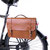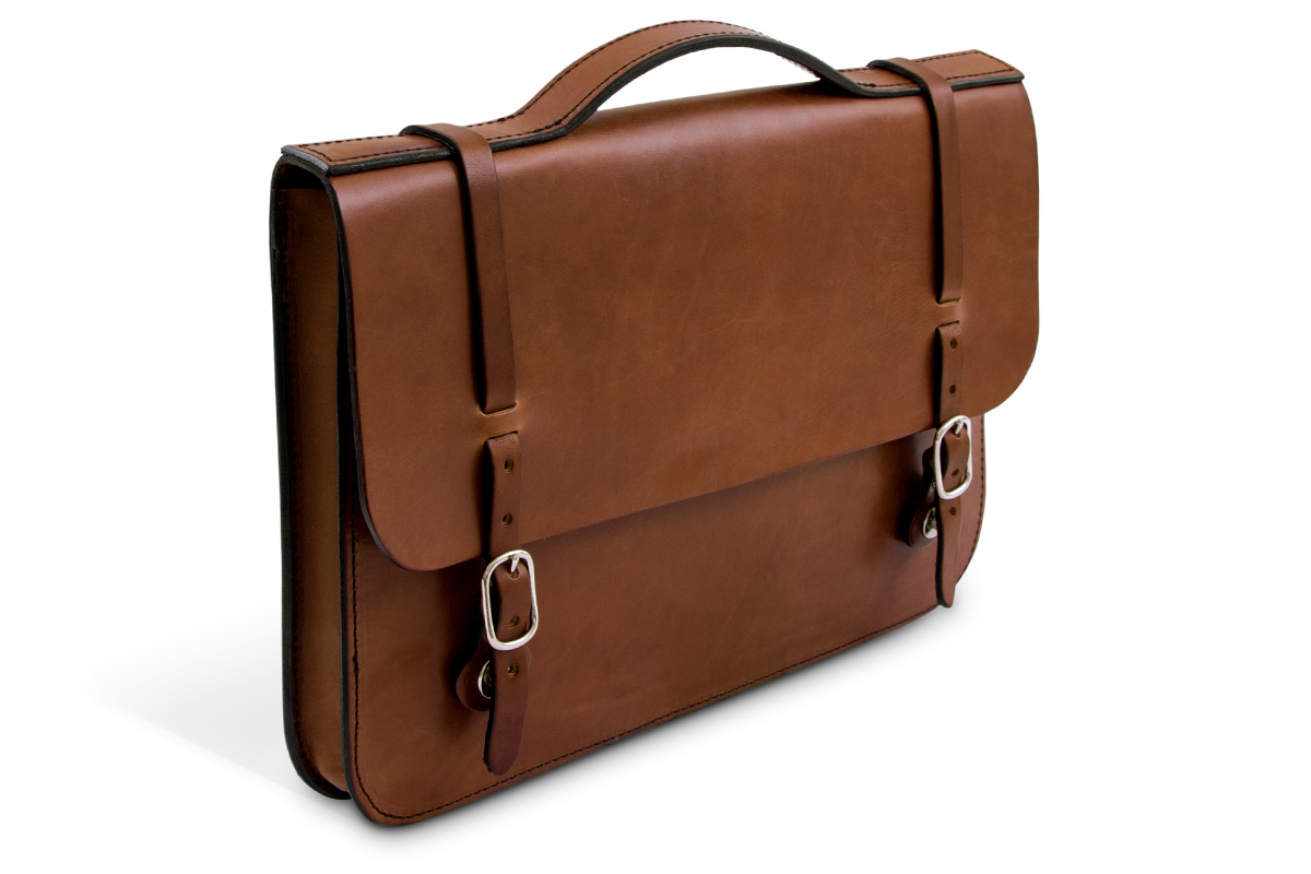 Für den Weg ins Büro wird der Deckel der Tasche einfach über die Fahrradstange gelegt und mit rostfreien TENAX/LOXX Druckknöpfen verschlossen. Ein Riegel arretiert die Tasche zusätzlich am Sattelrohr. Im Inneren dient eine Lasche dazu, dass Dokumente nicht herausfallen können. Mit dem Tragegriff macht diese Tasche auch ohne Fahrrad eine gute Figur. Die Tasche passt ideal zu großen Herrenrädern und nimmt DIN A4 Dokumente ebenso auf wie kompakte Laptops.